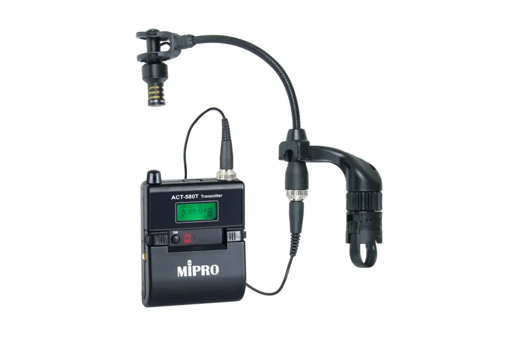 CM-10E 收音麥克風與 ACT-580T 數位佩戴式發射器組合套件,適用於二胡等拉弦樂器收音,提供高音質且穩定的無線傳輸。