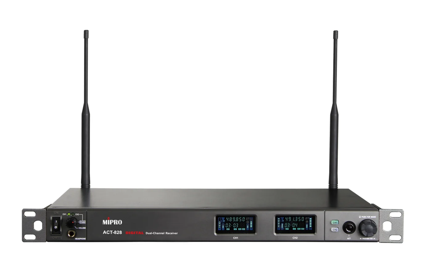 | 管理介面 | RJ-11 × 2,連接電腦進行軟體監控與設定(需另購 MIPRO DVU 轉接器)。另具 BNC Wordclock 接頭,可與其他設備同步時脈 |
