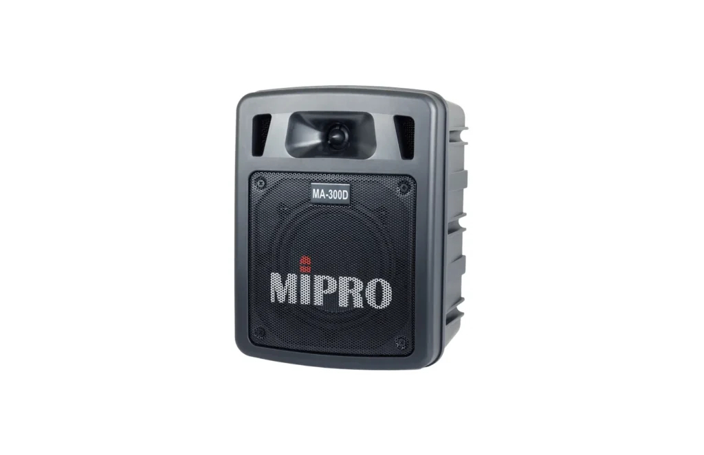 MA-300D 為小巧雙頻道可攜式無線擴音機,內建雙頻道無線麥克風模組,可同時使用兩支無線麥克風。搭載雙音路喇叭、藍牙、TWS 與 USB 錄放音,適合教學與小型活動。