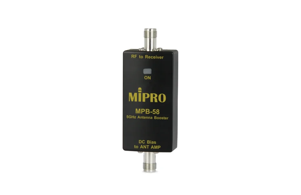 MPB-58 為 5 GHz 天線強波器,具固定約 20 dB 增益,可補償長距離纜線損耗,搭配接收機與 AT-58 使用時能提升接收距離與傳輸穩定性。