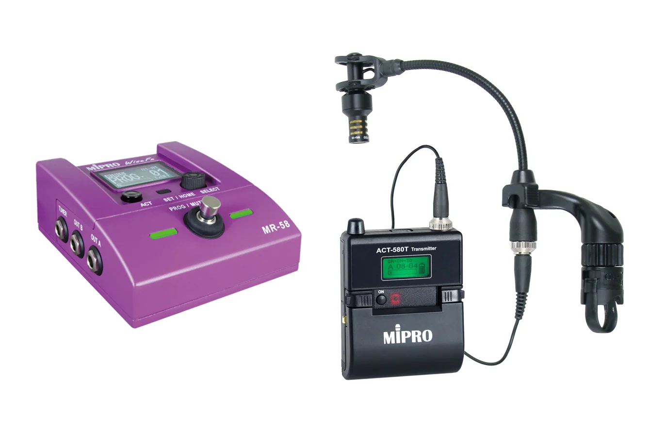 • MR-58 接收機搭配 ACT-580T 數位佩戴式發射器與 CM-10E 收音麥克風,適用於二胡等拉弦樂器收音,採用數位無線傳輸技術,提供高音質、低延遲且穩定的無線傳輸。